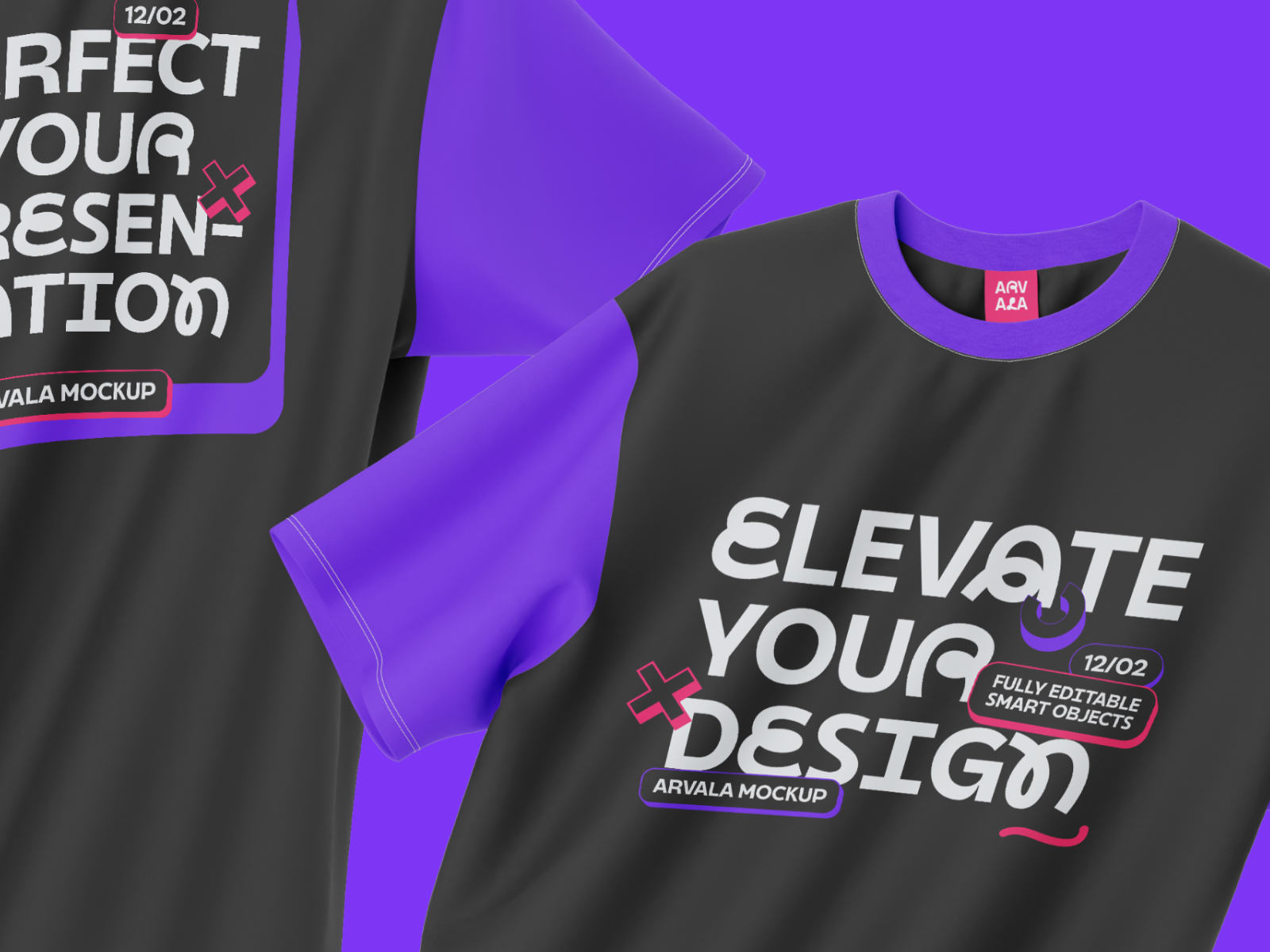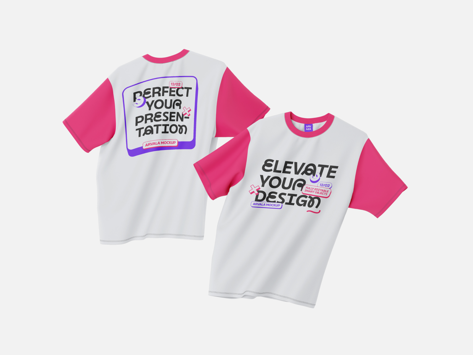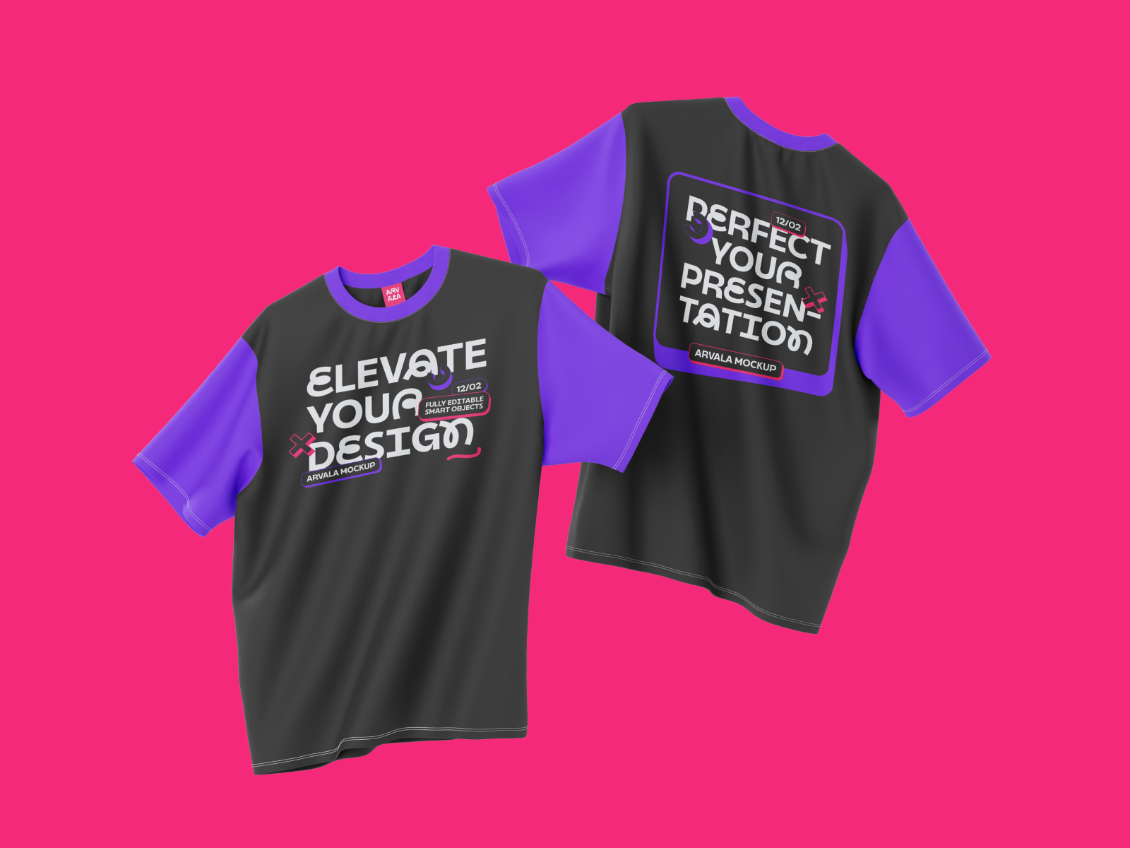 Basic T-Shirt Floated - 2 Mockup SceneShowcase your designs with this high-quality mockup, perfect for presenting logos, patterns, or branding on a sleek and stylish product. Ideal for merchandise, branding projects, or portfolio presentations.