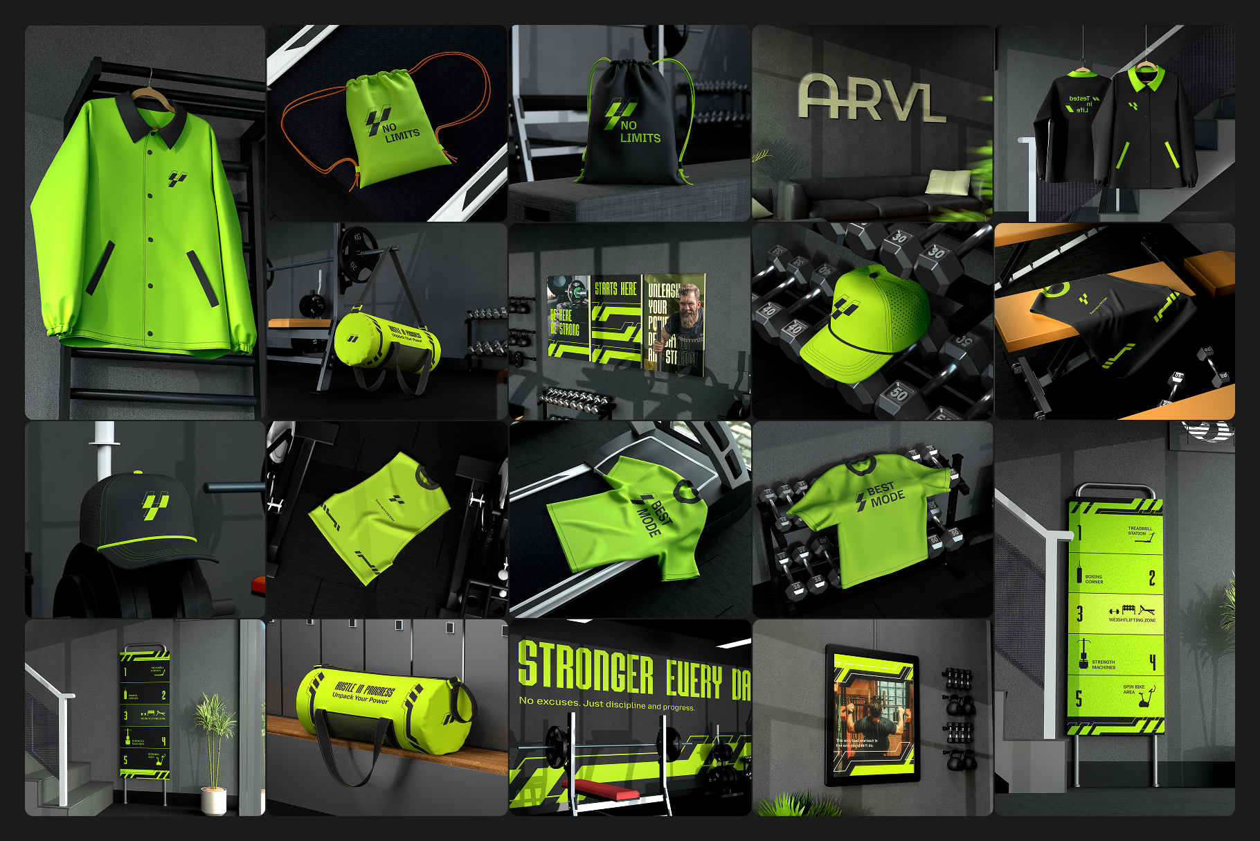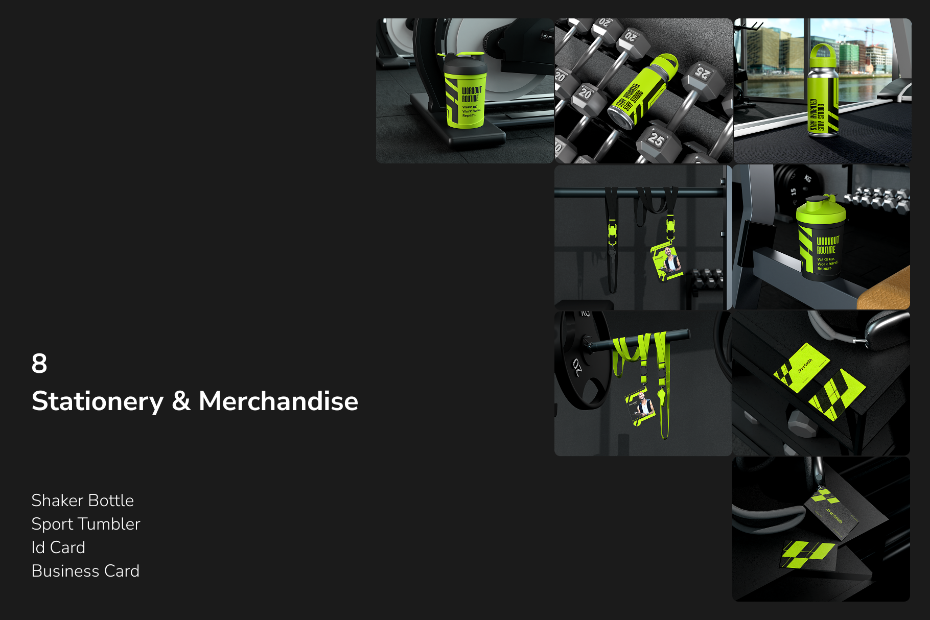 Designed to channel the strength and energy of fitness environments, this gym studio branding set mockup offers a powerful selection of scenes tailored for active lifestyle brands, fitness studios, and sports gear. Perfect for showcasing logos, merchandise, and brand assets in a bold, athletic setting.